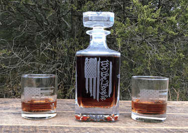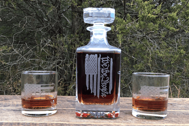 We'll etch your company name, company logo, favorite saying, good joke, bad joke, patriotic image, funny image, memorial image, silly image, bridesmaid gift, groomsman gift, or damn near anything you can imagine on a tumbler, glass, wood, ammo can or almost anything else.