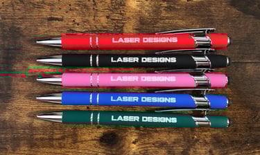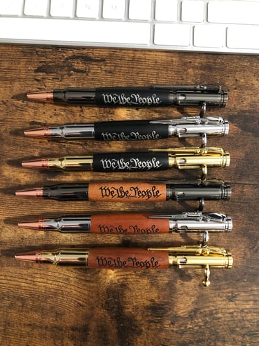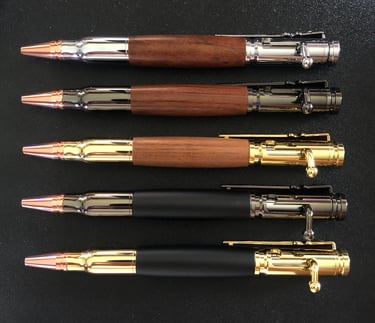 We can also personalize ink pens and pencils. Everything from unique bolt action rifle style to standard click pens to pencils and more.